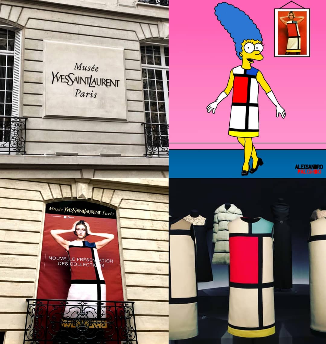 En 1965 el diseñador francés Yves Saint Laurent presentó una colección de alta costura inspirada en la obra del pintor holandés Piet Mondrian, siendo el vestido Mondrian el más famoso, convirtiéndose en un icono de la moda en los años 60. En 2013 el artista pop y activista Alexsandro Palombo vistió a Marge Simpson con el famoso atuendo en una serie de ilustraciones que aluden a las múltiples portadas de revista en las que la prenda creada por Laurent apareció.