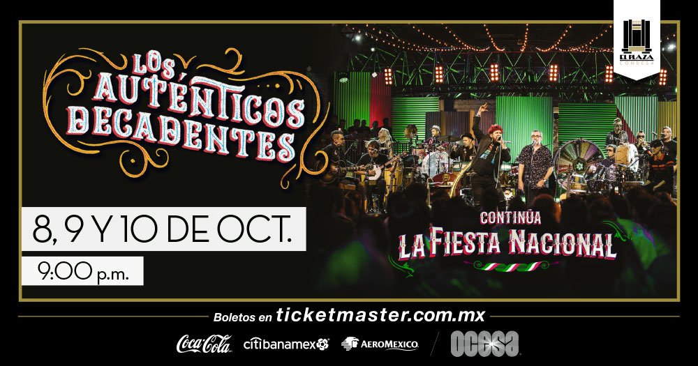 Acaban de anunciar tres fechas de Los Auténticos Decadentes en El Plaza Condesa, los próximos 8, 9 y 10 de octubre. ¡Que siga La Fiesta Nacional!